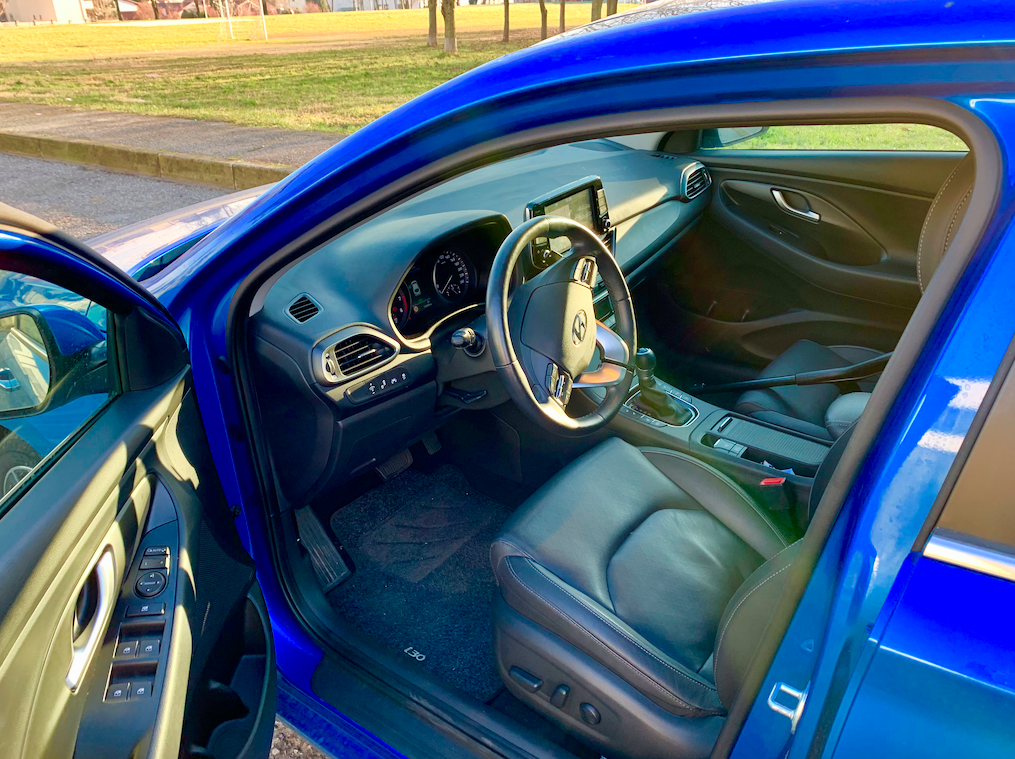 Sotto il cofano Due motori benzina: il 1.400 cc T-GDI 4 cilindri da 140 CV e il 1.0 T-GDI 3 cilindri da 120 CV(il nostro nella prova)Il motore 1.4 T-GDI è disponibile con trasmissione manuale a sei marce o con il cambio automatico a doppia frizione 7DCT. Il 1.000 cc T-GDI è invece offerto in abbinamento al cambio manuale a sei marce. Tutti i motori sono dotati del sistema Integrated Stop and Go (ISG) per garantire una maggiore efficienza. La gamma motori di Hyundai i30 Fastback sarà ulteriormente ampliata con l’aggiunta di un nuovo propulsore 1.600 cc turbodiesel 4 cilindri, declinato in due livelli di potenza (110 e 136 CV), disponibile sia con cambio manuale a sei marce che con cambio automatico a doppia frizione a 7 rapporti (7DCT). A bordo gli interni sono ben curati e la pelle è un particolare molto apprezzato 😉