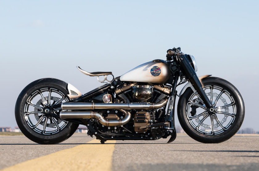Accessori originali Harley, qualche elemento after-market (compresa la telecamera posteriore che sostituisce gli specchi retrovisori) e tanto lavoro artigianale rendono la moto molto futuristica come ci si aspetta da un mezzo spaziale. Senza dimenticare la verniciatura con effetto bruciato sull’anteriore, come accadeva quando le navicelle spaziali rientravano nell’atmosfere a fine missione riportando gli eroi dello spazio sulla terra.