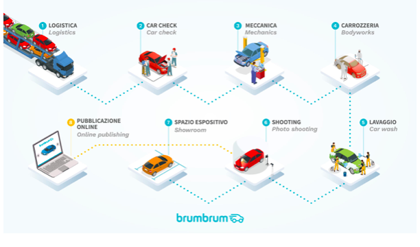 “Abbiamo raccolto in un solo stabilimento industriale tutti i processi necessari per il ricondizionamento di vetture usate”. – racconta Francesco Banfi, CEO di brumbrum – “Tutte le nostre auto hanno standard qualitativi elevati, sono garantite e certificate. Non accettiamo compromessi quando si tratta di prendere tutte le precauzioni necessarie affinché l’auto possa soddisfare le nostre aspettative e quelle del futuro cliente”.