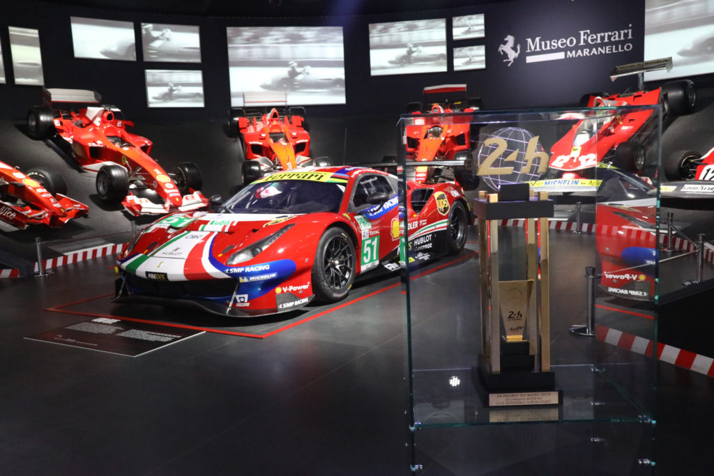 Alessandro Pier Guidi, James Calado e Daniel Serra, vincitori della 24 Ore nel 2019, hanno ritrovato la vettura con cui hanno primeggiato nella classe LMGTE Pro ed il trofeo sollevato sul podio più famoso del mondo, entrambi esposti all’interno della “Sala delle Vittorie”.