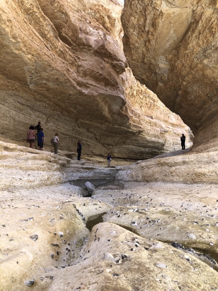 Lì abbiamo dovuto lasciare le nostre piccole Fiat Pande per proseguire a piedi lungo i binari non più utilizzati a causa di una frana, ma che un tempo portava i turisti lungo una vecchia pista mineraria tra Metlaoui e Redeyef che si snoda lungo il letto del fiume per lo più asciutto dell’Oved Seldja.