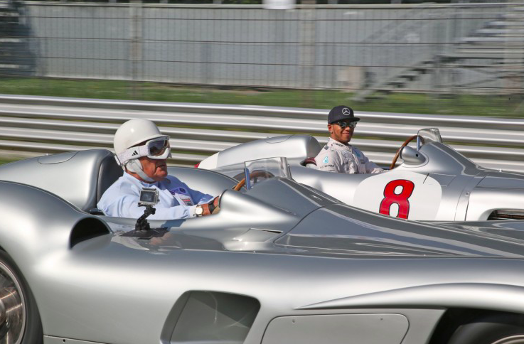 Abbiamo cenato nel gran soirè del Goodwood Festival of Speed di due anni, fa era al tavolo di fianco al mio, i tavoli hanno 11 posti proprio per  la raccolta del denaro per il Children che Lord March ci mette a disposizione e poi l’anno scorso quando fece una presenza fugace in mattinata, ma era già super ammalato  anche lui come il mio amicoTullio Abbate sono usciti di casa, come diciamo noi in Lombardia con i piedi davanti  ma non dimenticare che Sir dopo l’incidente che avuto  e che lo tenne lontano dalle corse, dopo un anno si rimise poi in pista e continuò a gareggiare ma ormai il treno era perso ; ma è sempre stato un campione un Super super super campione !