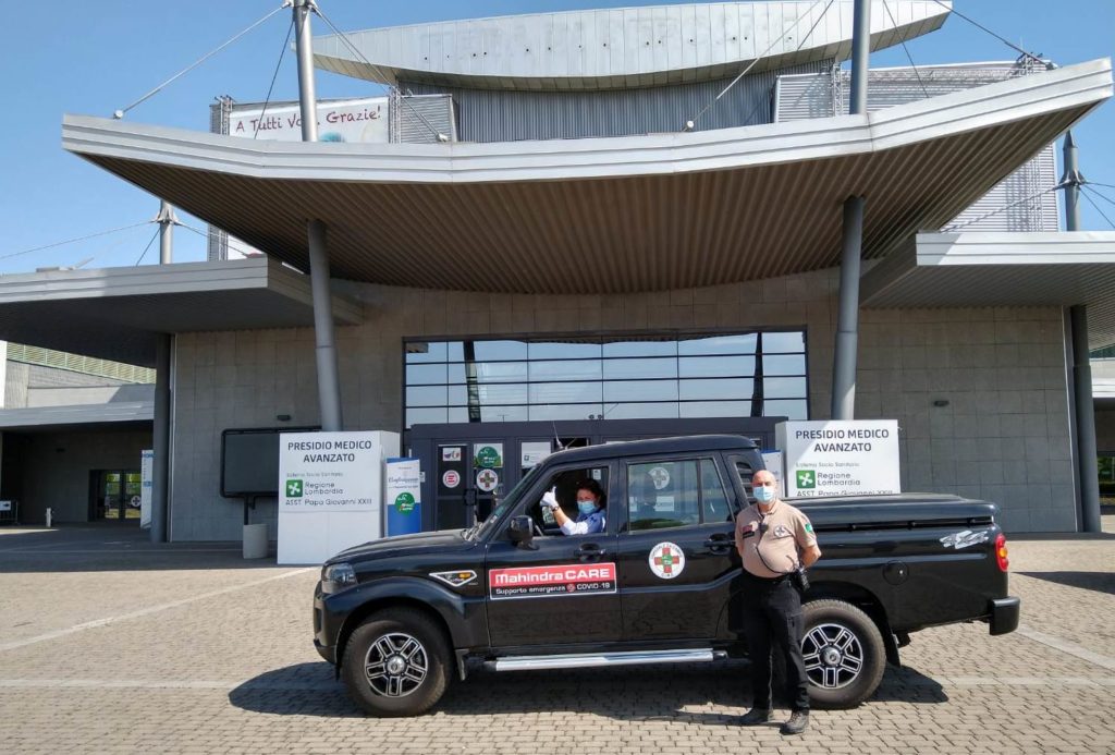 Nell’ambito di Mahindra CARE, Mahindra Europe – che ha sede in Italia, ha preso atto della necessità da parte di alcuni Enti, di avere ulteriori automobili per svolgere con maggiore celerità le proprie attività. Quindi ha messo a disposizione vari GOA PIK UP Plus del proprio parco veicoli a diversi Enti di Soccorso in Italia e Spagna, i due principali mercati in Europa. Nei giorni scorsi sono stati consegnati i primi Mahindra GOA PIK UP Plus all’Associazione  Nazionale Alpini sezione di Bergamo, che assieme a tanti volontari ha allestito l’Ospedale da campo presso la Fiera di Bergamo per ospitare l’altissimo numero di malati positivi al virus. I mezzi sono in uso al Gruppo Intervento Medico Chirurgico guidato dal Direttore Logistico Generale Antonio Tonarelli e al Centro Operativo Sede Nazionale della Protezione Civile A.N.A.  coordinato da Renato Ferraris. Il primo Gruppo si occupa della logistica dei materiali da e per l’Ospedale “Papa Giovanni XXIII”, mentre il secondo delle mense e di altri servizi.  Allo stesso tempo altri veicoli  commerciali Mahindra sono stati consegnati alla Protezione Civile sezione di Malnate, in Provincia di Varese, e cambiando regione all’Ospedale “INMI Lazzaro Spallanzani” di Roma. Il Dottor Franco Lufrani, Emergency Manager e responsabile del supporto reparto Emergenza Covid-19, ne ha previsto l’utilizzo per il trasporto di materiali (dispositivi di protezione come mascherine e camici, attrezzature mediche,  eccetera) e di persone, utilissimo anche perché l’Unità di Alto Isolamento dello Spallanzani è distante dalle strutture principali dell’Istituto.