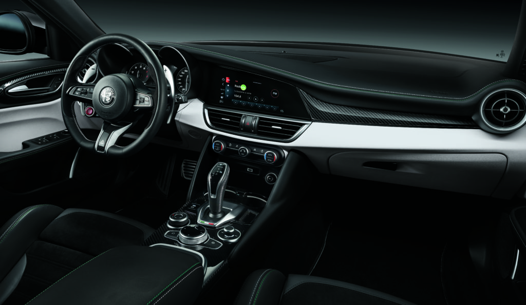 Questa nuova opzione amplia le possibilità di personalizzazione su Giulia e Stelvio Quadrifoglio, che continuano ad essere equipaggiate con i sedili sportivi ad alto contenimento in pelle e Alcantara, da sempre primo equipaggiamento su queste versioni. Rimangono inoltre disponibili i sedili sportivi con guscio in carbonio by Sparco. La tecnologia di bordo prevede un nuovo sistema di infotainment completamente rinnovato con display centrale touchscreen da 8,8”, dotato di servizi connessi e con interfaccia ridisegnata. Tra le novità esclusive di Quadrifoglio le Performance Pages, schermate dedicate che consentono di visualizzare in tempo reale lo stato della vettura – temperature dei principali organi meccanici, distribuzione di coppia, pressione dei turbo e potenza utilizzata in tempo reale, oltre a cronometri digitali per misurare le prestazioni di accelerazione e velocità massima. Per quanto riguarda le novità sugli esterni, Giulia e Stelvio Quadrifoglio adottano nuovi gruppi ottici posteriori a LED con lente brunita e nuova finitura nero lucido per trilobo anteriore e badge posteriori.