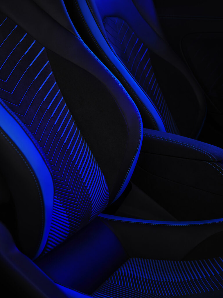 Alcantara è la scelta di elezione dei centri stile più attenti ai trend e al lusso contemporaneo come Maserati, che trova nel materiale il perfetto alleato per valorizzare un brand che unisce alle prestazioni tecniche la piacevolezza di guida e i contenuti innovativi. Ogni singolo metro di Alcantara nasce dallo stabilimento produttivo di Nera Montoro, sulle colline umbre, e da qui viene esportata in ogni parte del mondo, confermando Alcantara come ambasciatrice dell’autentico Made in Italy, capace di realizzare prodotti impiegando tecnologie avanzate mantenendo però la cura del dettaglio, tipica delle lavorazioni artigianali. Gli interni in Alcantara della nuova Maserati MC 20 presentano una innovativa lavorazione tecnologica con un effetto che cattura l’occhio e il tatto, studiati e realizzati su misura. Sui sedili e pannelli porta infatti la prima tentazione, dopo lo stupore alla vista, è il desiderio di toccare con mano la lavorazione laser che taglia con un originalissimo disegno a gradiente il centrale della seduta. Sul retro di Alcantara nera è applicato un backing in colore a contrasto, con due possibili personalizzazioni di colore blu e metallic grey. Inoltre, è possibile optare per Alcantara colore cuoio con backing metallic grey. L’effetto optical è enfatizzato dall’interlinea decrescente tra i tagli laser. Grazie alla sua versatilità, Alcantara permette un elevato grado di personalizzazione e soluzioni d’avanguardia che combinano stile e tecnologia, bellezza e funzionalità.