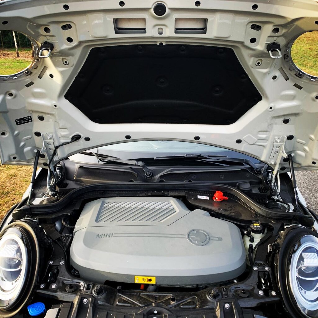 Invece di un motore a benzina o diesel, c’è un motore elettrico sotto il cofano della Nuova MINI Full Electric. L’unità compatta è posizionata nella parte anteriore della vettura e fissata sul telaio per mezzo di una struttura tubolare fissa. Il motore elettrico, essendo più piccolo e anche significativamente più leggero di un motore a combustione, contribuisce alla straordinaria distribuzione del carico assiale della Nuova MINI Full Electric.