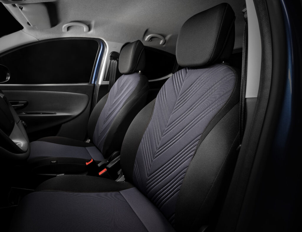 Nel trim Gold è stato introdotto un nuovo allestimento giocato sui toni del nero e del blu con la rivisitazione dello Chevron, un grande classico Lancia reinterpretato in chiave contemporanea, realizzato attraverso un lavoro di elettrosaldatura in 3D che dà un’immagine molto ricercata e preziosa, in perfetto stile Ypsilon.