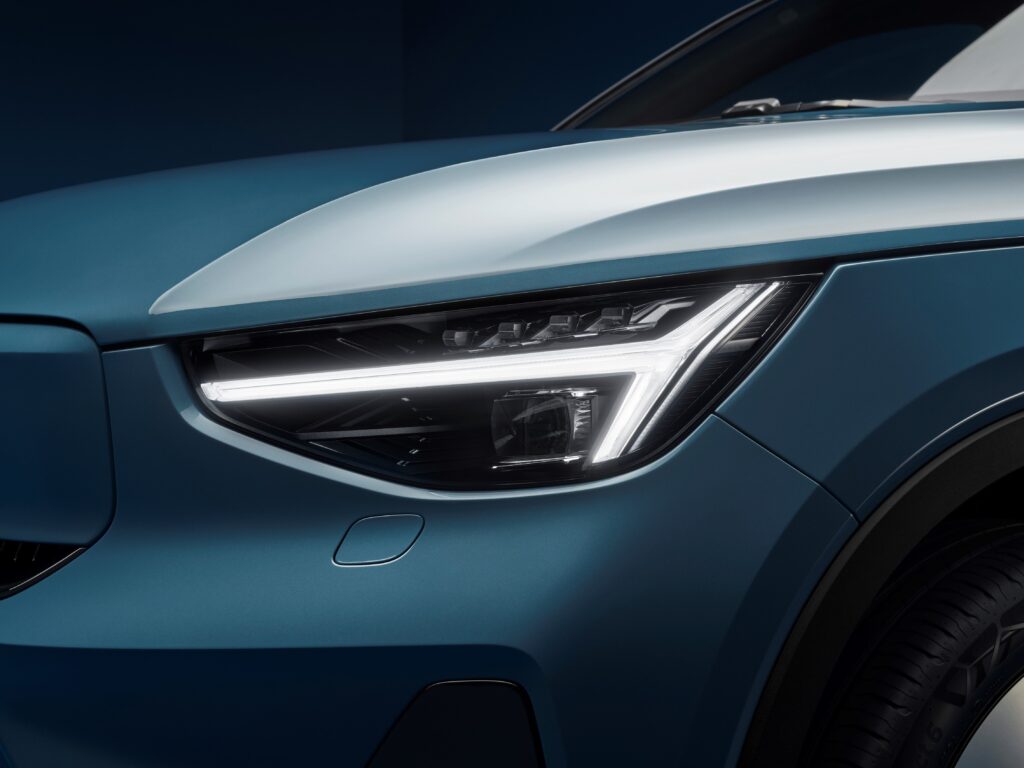 La sezione posteriore della C40 Recharge si distingue per il sensazionale disegno rivisto delle luci che si raccordano alla perfezione alla linea più bassa del tetto, mentre il design del frontale introduce un nuovo volto per le Volvo elettriche e include proiettori ad avanzatissima tecnologia pixel.