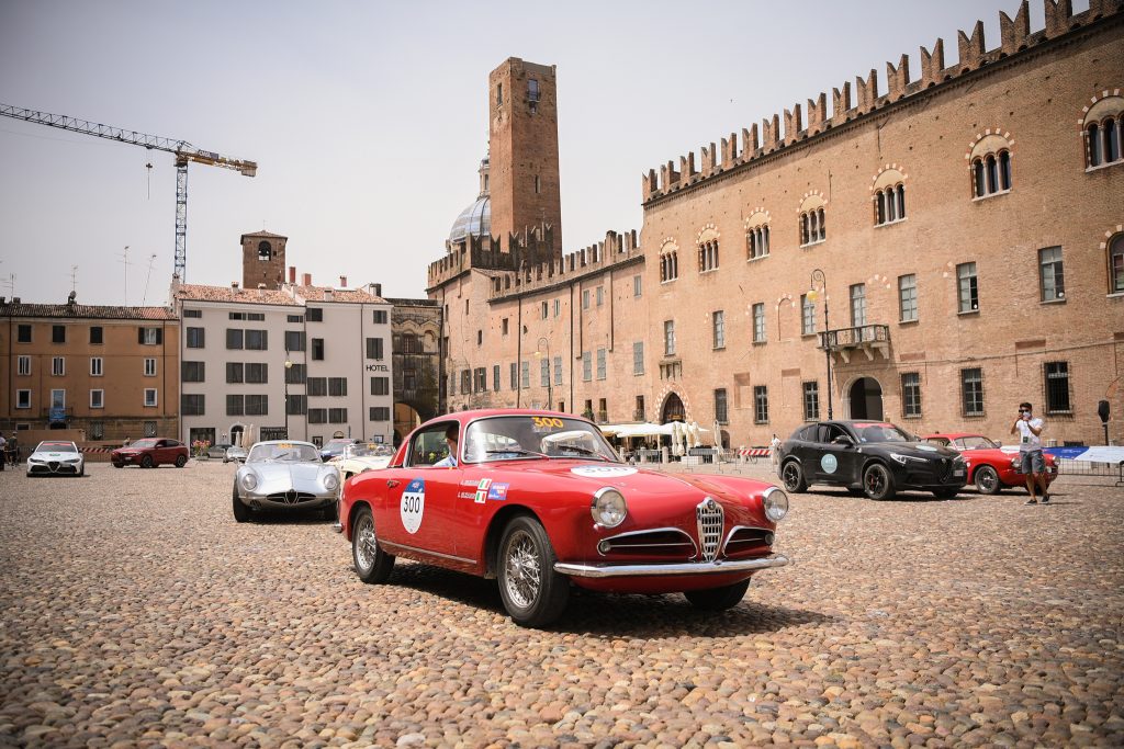 Uno dei segreti del successo quasi secolare della 1000 Miglia è la perfetta integrazione di capolavori su quattro ruote in panorami suggestivi e su strade che spesso esulano dalle rotte più battute. Le autostrade percorse di fretta dai pendolari e dai turisti lasciano spazio a statali, regionali e provinciali dove godere di scorci di bellezza italiana e apprezzare al meglio il proverbiale piacere di guida delle vetture Alfa Romeo. La potenza della Giulia GTA e della GTAm scuote per un attimo il quieto sabato mattina nella regione dei motori per antonomasia. Dopo Modena e Reggio Emilia, la 1000 Miglia rientra per un attimo in Lombardia: è la volta del percorso cittadino di Mantova, museo urbano diffuso che accoglie il museo viaggiante con un’emozionante sfilata sul Mincio.