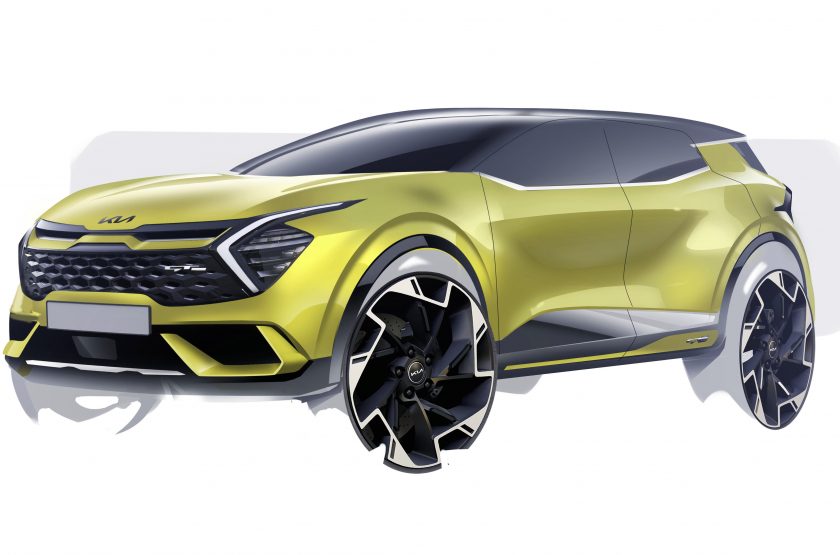Il nuovo linguaggio del design di Kia – Opposites United – è al centro della creazione del nuovo Sportage e ne caratterizza ogni singolo elemento. Il design si basa sul tema “Bold for Nature” e rende omaggio alla perfezione e alla semplicità della natura riallacciandosi alla nuova filosofia ispiratrice del design di Kia. Le immagini rivelate oggi denotano un carattere da SUV sportivo, deciso e soprattutto all’avanguardia. Il nuovo Sportage presenta un profilo più compatto e dinamico che lascia intuire livelli elevati di agilità con prestazioni e comportamento consoni alle veloci strade europee. Progettato per essere il SUV più dinamico ed elegante del suo segmento, il nuovo Sportage dedicato al mercato europeo è caratterizzato da un aspetto muscoloso e una silhouette forte ma raffinata, risultato di linee nitide e tese che si incrociano sulle superfici. Gli sketches suggeriscono un design di carattere nella parte anteriore grazie a un profilo della griglia nera curata nei più piccoli dettagli, che va ad occupare l’intera larghezza del frontale. L’iconica griglia Tiger Nose di Kia si presenta con una nuova interpretazione stilistica: apparentemente sospesa ad un primo sguardo, questa si combina alla perfezione con i distintivi LED DRL (luci di marcia diurna) a forma di boomerang e ai fari Matrix LED del frontale vettura.
