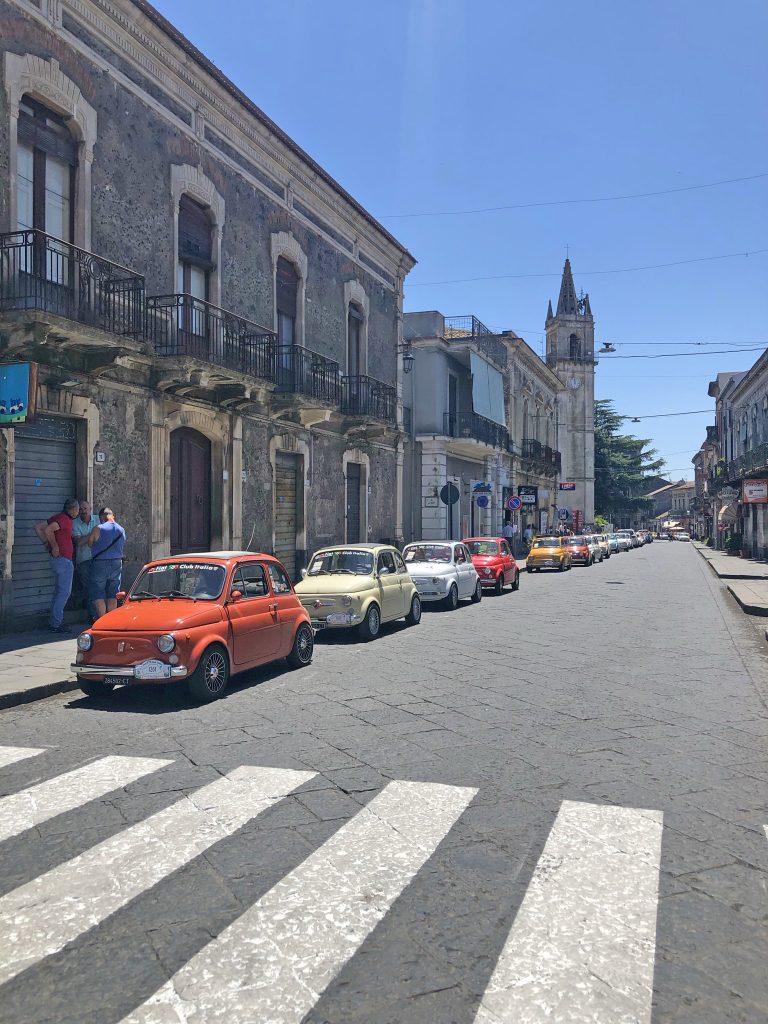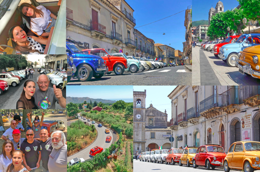 Dopo la diretta con il saluto di tutti i cinquecentisti insieme al vice sindaco Toni di Mauro che ha presentato la via dell’arte con la storia di Belpasso, si riparte con le vetture per le vie del centro storico di Nicolosi, Belpasso, Campo rotondo fino ad arrivare a Misterbianco dove i vigli hanno accompagnato e fatto sostare le vetture a Piazza Mercato, finendo la serata con un’apericena.