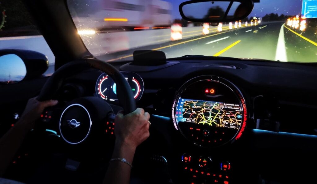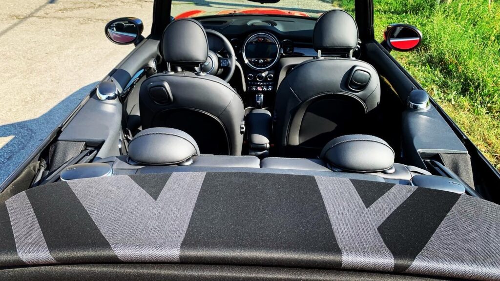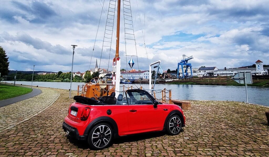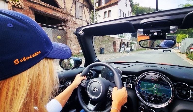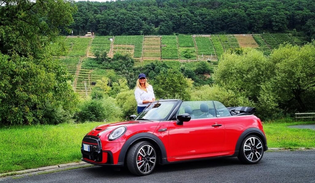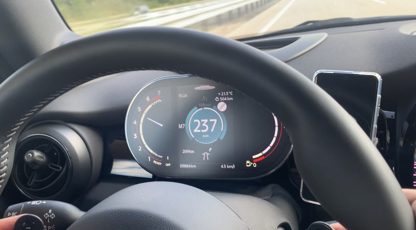 Entrata in Germania mi sono strofinata le mani ed ho detto, adesso vediamo questi 231cv cosa fanno, inserisco sport e giù il pedale 130, 140, 150, 160, 170, 180, 190, 200, 210, 220, ops mi sono scordata di chiudere la capotte, la curiosità di spingere sull’acceleratore era talmente tanta che non ho chiuso il tetto, non importa, quasi non me ne sono nemmeno accorta da quanto ero concentrata perché comunque, passare i 200km/h con una mini “piccola” con assetto sport, si deve stare concentrati ad ogni minimo sobbalzo e e movimento dello sterzo, molto impegnativa..