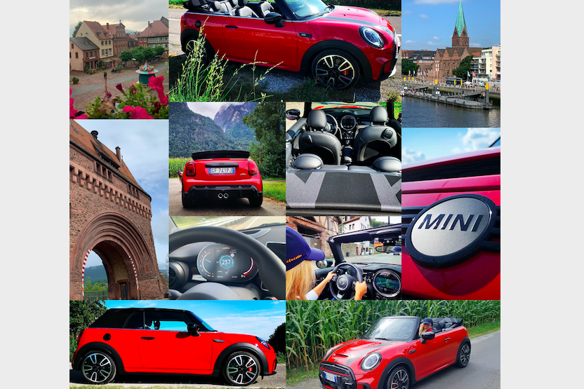 Entrata in Germania mi sono strofinata le mani ed ho detto, adesso vediamo questi 231cv cosa fanno, inserisco sport e giù il pedale 130, 140, 150, 160, 170, 180, 190, 200, 210, 220, ops mi sono scordata di chiudere la capotte, la curiosità di spingere sull’acceleratore era talmente tanta che non ho chiuso il tetto, non importa, quasi non me ne sono nemmeno accorta da quanto ero concentrata perché comunque, passare i 200km/h con una mini “piccola” con assetto sport, si deve stare concentrati ad ogni minimo sobbalzo e e movimento dello sterzo, molto impegnativa..