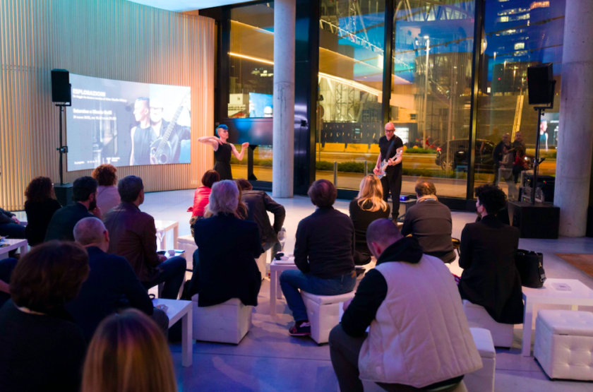 Sono state le note di Saturnino – produttore e bassista di fama internazionale, noto soprattutto per la sua collaborazione con Jovanotti – e la danza di Nicola Galli – coreografo e performer tra i più interessanti della giovane scena italiana – ad aprire ieri sera al Volvo Studio Milano Esplorazioni, rassegna realizzata da Triennale Milano Teatro in collaborazione con Volvo Car Italia. Grazie ai quattro appuntamenti previsti nel corso dell’anno, lo spazio di brand di Volvo ospita per la prima volta la programmazione performativa di Triennale. Il concept di Esplorazioni si basa sull’interazione fra danza e musica live e mette in risalto i temi del movimento (inteso anche come viaggio) e della sostenibilità. Il titolo della rassegna vuole essere un riferimento all’immaginario del Grande Nord, all’incontro tra l’essere umano e i grandi spazi, alla ricerca di punti di contatto tra movimento coreografico e movimento sonoro. Il dialogo fra le due forme espressive porta al centro della scena il corpo e quindi la persona, perfettamente in linea con l’azione di Volvo e con la sua strategia. Per Volvo la persona costituisce il punto di vista dal quale guardare alla Natura, all’Ambiente da difendere e ai temi della Sostenibilità, prioritari per il brand. Le diverse performance prevedono l’esecuzione di creazioni originali che danno vita a un dialogo inedito tra danza e musica, tra corpo e suono. In tal senso, la performance di Saturnino e Nicola Galli, che ha trovato nell’improvvisazione e nel virtuosismo la sua chiave di volta, è stata la copertina perfetta della rassegna.