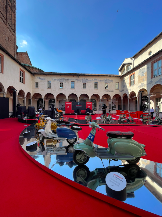 Per celebrare questi 75 anni di tradizione e passione, Lambretta e Museo della Lambretta hanno unito le forze per realizzare un’ambiziosa installazione artistica durante la settimana del Fuorisalone 2022. Nel cuore di Milano, nel Chiostro Piccolo di San Simpliciano, Brera Design District, il prestigioso brand milanese espone i suoi modelli più rappresentativi. Tra questi il primo modello prodotto, la Lambretta M(A) disegnata da Cesare Pallavicino per la parte del telaio e da Pier Lugi Torre per la parte meccanica, poi lo “scooter d’oro” dell’attrice americana Jane Mansfield e il modello 225 Corsa che può superare i 170km/h.