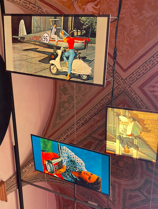 Visitando la mostra, si può sperimentare lo scorrere del tempo, a partire dall’anello esterno fino al centro dell’installazione. Vi invitiamo a iniziare con le immagini mozzafiato in bianco e nero della galleria del chiostro, simbolo dello spirito della nascita di Lambretta. In parallelo, guardando in alto, è posizionata un’altra esposizione sopraelevata, formata da cento immagini a colori rappresentative del “Mondo Lambretta”, integrate negli antichi affreschi del soffitto del Chiostro. Simboleggiano quanto la Lambretta abbia rappresentato nella ricca storia d’Italia. Le colonne del chiostro circondano e sostengono lo spirito dell’installazione artistica. E al centro, al centro dell’universo Lambretta, proprio al centro della piazza, al centro dell’installazione, troviamo il punto di svolta immaginario, che mette in risalto la X300 e la G350; entrambi definiscono il nostro futuro in questo momento.