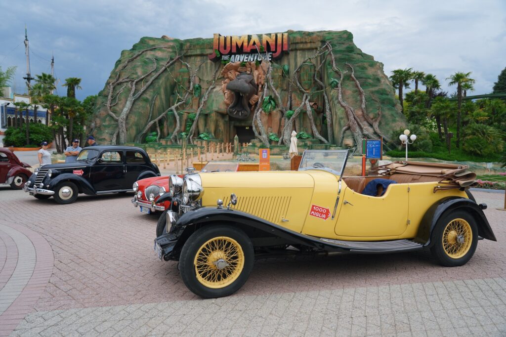Auto d’epoca della 1000 Miglia a Gardaland per una sfilata