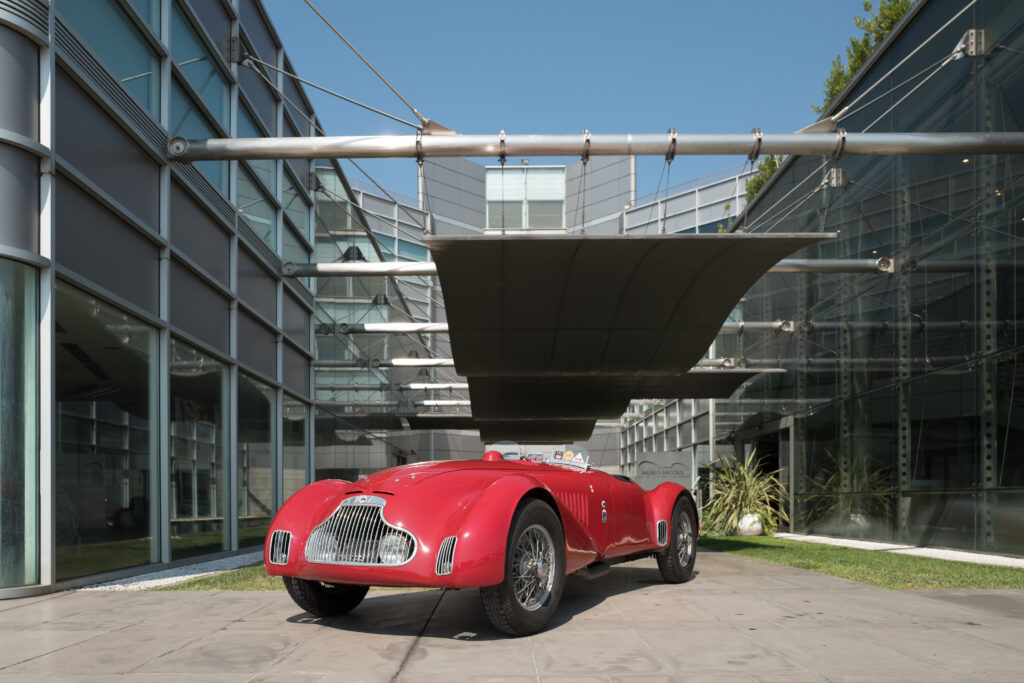 Tra le vetture esposte partecipanti ufficiali della Mille Miglia, impossibile non citare la Lancia Astura Mille Miglia del 1938, esemplare unico al mondo, iscritta alle edizioni storiche della gara del 1940 con il campione Luigi Villoresi equipaggio #75 e del 1948 pilotata da John Gordon con il numero #42, per poi partecipare a diverse edizioni guidata dallo stesso Luciano Nicolis. Ma anche la nostra Fiat 1100 Sport barchetta, carrozzata da Rocco Motto, del 1948, quello stesso anno gareggiò con l’equipaggio Pedretti-Alessio con il numero #395. Questa spider proprio l’anno scorso si è aggiudicata il trofeo “Spirit of Mille Miglia” al Concorso di eleganza Poltu Quatu Classic, riconoscimento ufficiale Mille Miglia riservato all’auto che meglio rappresenta l’essenza della Freccia Rossa.