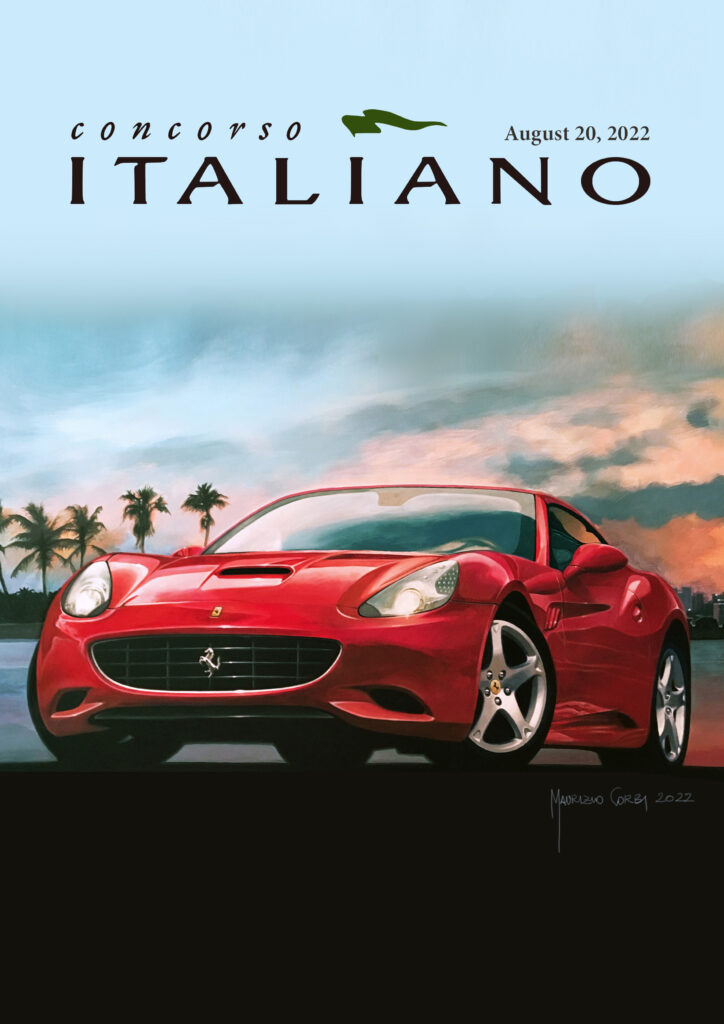 In Maurizio convivono da sempre due anime, quella dello stilista di auto e quella dell’artista. A partire dagli anni Novanta si dedica all’illustrazione delle più affascinanti auto del passato, attività che gli consente di viaggiare e conoscere paesi e culture diverse, proprio come Concorso Italiano. Un momento in cui si creano connessioni inaspettate e possono nascere nuove idee. Per l’occasione Maurizio Corbi ha realizzato un’illustrazione per la cover del magazine di Concorso Italiano in cui compare la Ferrari California del 2008. La perfetta rappresentazione delle due sue anime: un dipinto in acrilico su tela che racconta il design della vettura. Il frontale nasce infatti da una sua proposta di stile selezionata dall’allora capo del design Ferrari Donato Coco.