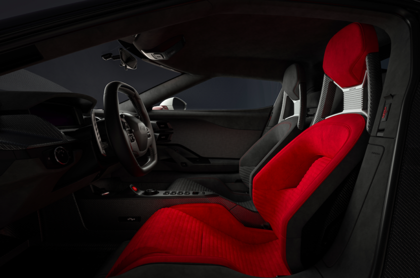 In questa ottica è stata scelta Alcantara® per rivestire il sedile del pilota, diverso dagli altri dell’abitacolo, realizzato in tinta con il rosso o il blu dei dettagli della livrea, mentre il sedile del passeggero in nero ebano con cuciture a contrasto ma in tinta con il sedile del guidatore. Il sedile presenta una forma ergonomica ed avvolgente e nella parte centrale della seduti si caratterizza per un motivo lavorato in orizzontale con un gioco tridimensionale dato dall’imbottitura e cucitura.
