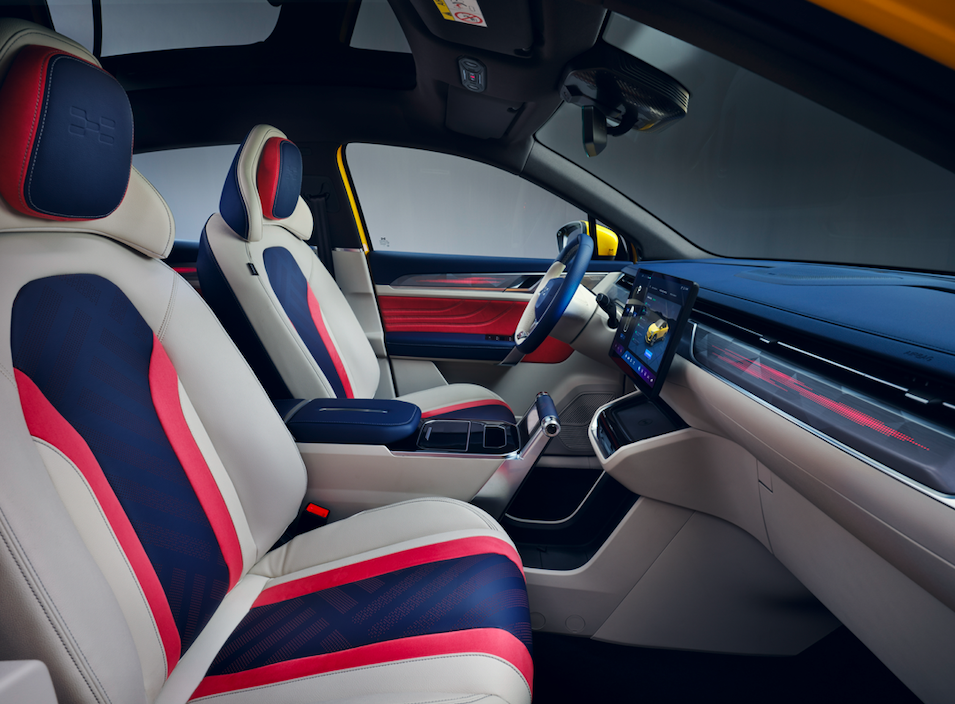 Gli interni di Aiways U6 aprono un nuovo capitolo del design automobilistico. Partendo dalla sensazione di una spaziosità unica e generosa, resa possibile dal passo lungo del veicolo, i progettisti di Aiways hanno dato vista a un abitacolo ricco di stile. Nella nuova Aiways U6, il cruscotto diventa un importante elemento di stile. Il display centrale da 14,6” cattura l’attenzione. Il quadro dietro il volante è perfettamente integrato nella struttura di supporto orientata orizzontalmente che, a sua volta, enfatizza la larghezza del veicolo. Il conducente e il passeggero a fianco sono separati da una console centrale con un ampio bracciolo e vani portaoggetti.  Il raggruppamento di numerose funzioni di comando nel display centrale, insieme ad applicazioni in alluminio graficamente raffinate, creano un’atmosfera pulita, sportiva e funzionale, ispirata al design industriale. La scelta di ridurre le unità funzionali è supportata da elementi di design dai contorni netti e ben definiti. Questi ultimi, così come il display centrale piatto che sembra fluttuare liberamente nello spazio, il volante multifunzione a due razze e i dettagli di ispirazione high-tech, rispondono ai requisiti di leggerezza di ispirazione minimalista.