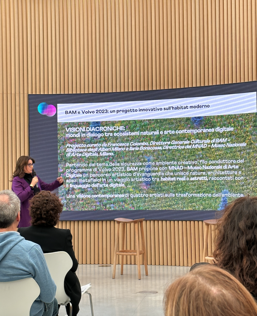 Al concetto di Habitat si rifà anche Visioni Diacroniche: mondi in dialogo tra ecosistemi naturali e arte contemporanea digitale, il nuovo e suggestivo progetto a cura di BAM– Biblioteca degli Alberi Milano e MNAD – Museo Nazionale di Arte Digitale, Milano che costituisce un assoluto highlight nella proposta legata all’Arte per la stagione 2023 del Volvo Studio Milano e amplia la partnership fra BAM e Volvo, che è Park Ambassador di BAM sin dagli esordi. Visioni Diacroniche si articola su quattro diversi appuntamenti e vede il coinvolgimento di altrettanti artisti internazionali che lavorano sulla trasformazione dell’ambiente mettendo in relazione arte, Habitat e Sostenibilità con il linguaggio dell’arte digitale. L’intento del percorso di arte contemporanea è quello di raccontare la visione degli artisti sul tema dell’ambiente e della sua percezione, ognuno con la propria estetica e la propria idea di rappresentazione artistica.