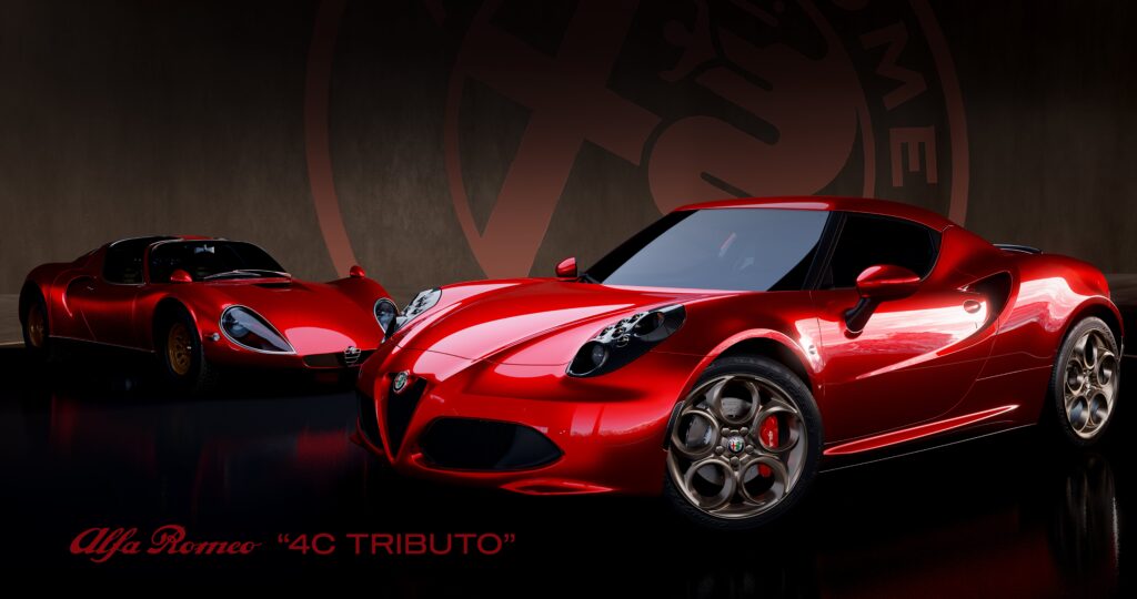 In particolare, il primo filone denominato “4C Tributo” è quello storico che gioca sul colore rosso, la tinta che più di tutte identifica le vetture Alfa Romeo incarnando una particolare accezione di sportività Premium tipico del marchio, un vero e proprio archetipo entrato nell’immaginario collettivo. Invece, la seconda ambientazione esplorata è quella “corsaiola”, da qui il nome “4C Corsa”, ben espressa dalle livree grigio opaco che mettono in risalto le forme muscolari della vettura e, al tempo stesso, enfatizzano le peculiarità tecniche votate alle prestazioni. Infine, “4C leggenda” è terzo e ultimo filone, quello più intimo di Alfa Romeo poiché unisce la sportività con la storia del Biscione, come dimostrano i colori pastello del passato, tra cui un sofisticato azzurro abbinato a cerchi bianchi tecnici.