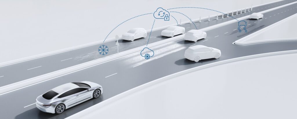Servizi di mappe connesse per la guida autonoma: I servizi di mappe connesse contribuiscono a rendere la mobilità sicura e conveniente. Utilizzano i dati dello sciame (crowdsourcing) in combinazione con altre informazioni dall’infrastruttura per creare un sensore virtuale da utilizzare nei sistemi di assistenza alla guida. Forniscono informazioni in tempo reale sulle condizioni stradali e su rischi come aquaplaning, ghiaccio e neve. In questo modo i veicoli autonomi possono anticipare correttamente le condizioni stradali, adattando di conseguenza il comportamento di guida, scegliendo un percorso diverso o anche chiedendo al guidatore di prendere il controllo. Grazie a questo servizio, Bosch è in grado di migliorare la disponibilità dei sistemi di assistenza alla guida e abilitare nuove funzioni.