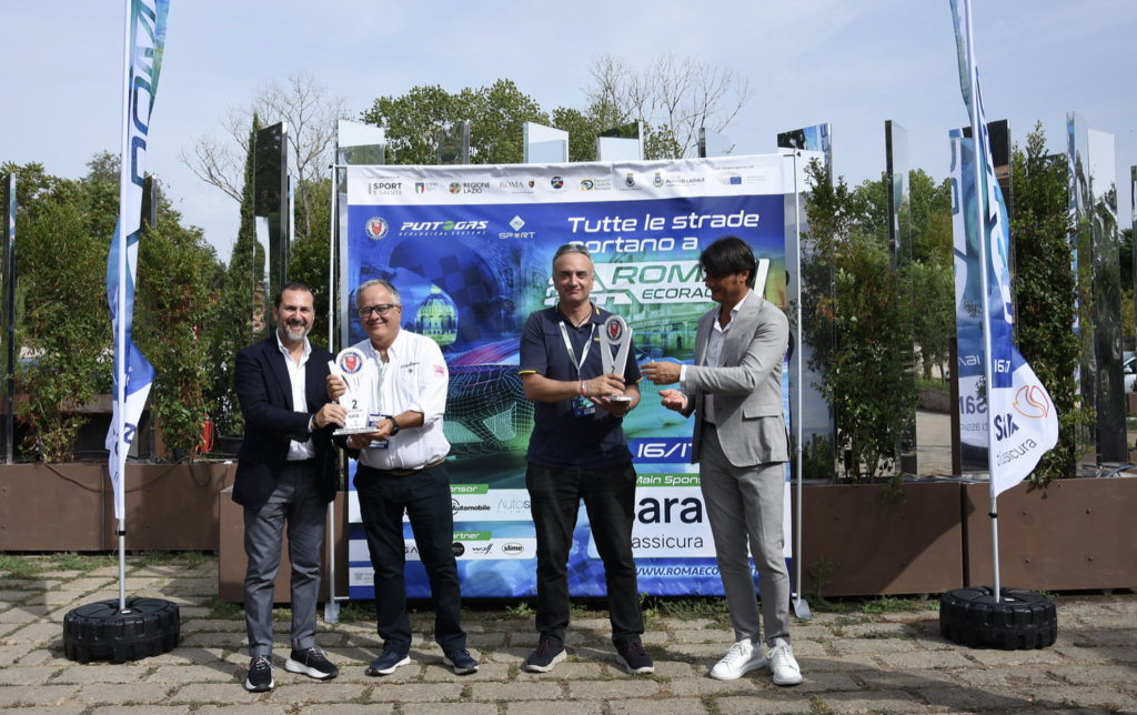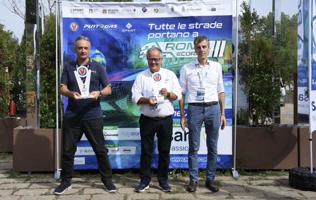 Per il 1° Roma Eco Race primi classificati Matteo Rigamonti e Michele Firriolo, Rigamontigas.it, su Skoda Enyaq 80X, secondi classificati Andrea Cauli e Marco Perugini, ufficio stampa Automobile Club d’Italia, su Renault Captur full hybrid, terzi Bruno Lombardelli e Iolanda Chiarolanza, Punto Gas – Prins, su BMW X4 XDRIVE 20I ibrida a GPL.