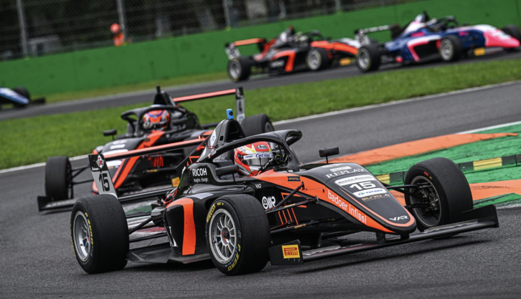 Gara 3 è stata uno spettacolo avvincente, che ha concluso il weekend di Monza nel segno dello spettacolo. Il primo colpo di scena è arrivato già allo start, con il poleman Kacper Sztuka, US Racing, vincitore della gara di sabato, che ha stallato in griglia ed è stato più avanti costretto al ritiro in seguito a un incidente con Alfio Spina, BVM Racing. Freddie Slater, pilota Prema all’esordio, ringrazia e, dalla prima fila, raccoglie la testa della gara. Ancora un colpo di scena con l’uscita di James Wharton e Ugo Ugochukwu. Nel pieno della lotta per le posizioni di vertice, l’australiano soffre un blocco degli pneumatici piuttosto importante e slitta in pista, poi arriva il contatto con il compagno in PREMA Racing ed è Safety Car. È stata poi durissima la battaglia per la guida del gruppo, con Slater e Lindblad che si sono sorpassati a vicenda più volte, poi tra i due è arrivato il contatto che ha portato al ritiro di Slater. Brando Badoer, pilota italiano di Van Amersfoort Racing, ha conquistato in pista la P2, arrivando ad avvicinarsi moltissimo al rivale nelle fasi conclusive.