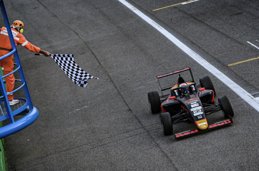 Nell’ultima gara del secondo round dell’Euro 4 Championship è arrivata la vittoria, a lungo cercata, per il pilota junior Red Bull di Prema Racing Arvid Lindblad. In una gara ancora una volta complessa e ricchissima di colpi di scena, il pilota londinese ha primeggiato su tutti portando a casa la vittoria. A seguirlo sul podio, al termine di un’intenso duello, è stato il pilota italiano Brando Badoer. A completare l’ultimo podio del fine settimana Akshay Bohra.