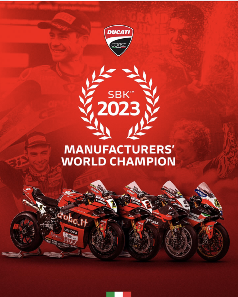 Con la vittoria di Alvaro Bautista, Ducati conquista il titolo 2023 World Winning Manufacturer: titolo ottenuto grazie anche ai risultati di Axel e del Team Motocorsa Racing.