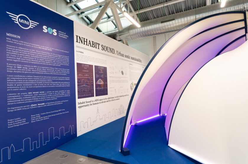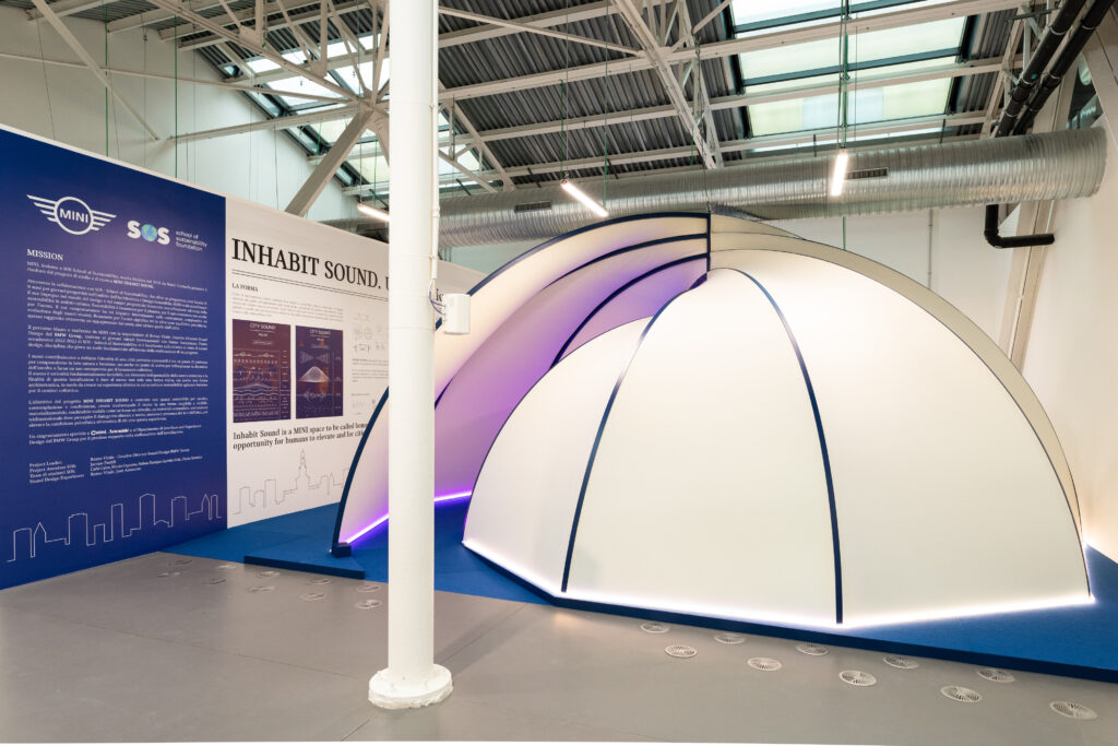 Inaugurata l ’installazione MINI Inhabit Sound presso ADI Design Museum a Milano, che sarà aperta al pubblico fino al 5 novembre 2023. Il progetto è stato realizzato grazie alla partnership tra MINI e SOS School of Sustainability, scuola fondata nel 2015 da Mario Cucinella che offre un programma post-laurea di 9 mesi per giovani progettisti nell ’ambito dell ’Architettura e Design Sostenibile. È frutto di un percorso di formazione e creativo curato da Renzo Vitale, Creative Director Sound Design del BMW Group, insieme ad un gruppo di studenti internazionali dell’accademico 2022/23 e focalizzato sul tema del Sound Design.