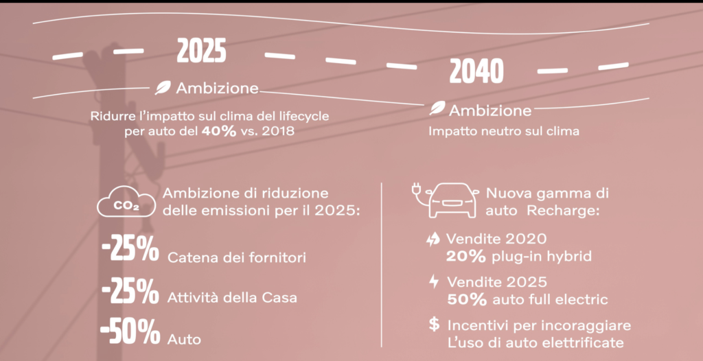 Volvo Cars intende ridurre l’impronta di carbonio del ciclo di vita di un’auto del 40% tra il 2018 e il 2025, anche realizzando una riduzione del 25% delle emissioni nella sua catena di fornitori entro il 2025. Inoltre, alla conferenza COP28 in corso a Dubai ha annunciato di puntare a ridurre, entro il 2030, le emissioni di CO2 per autovettura del 75% rispetto al valore di riferimento del 2018. Nei primi nove mesi del 2023 le emissioni complessive di CO2 per autovettura sono state inferiori del 19% rispetto al 2018.