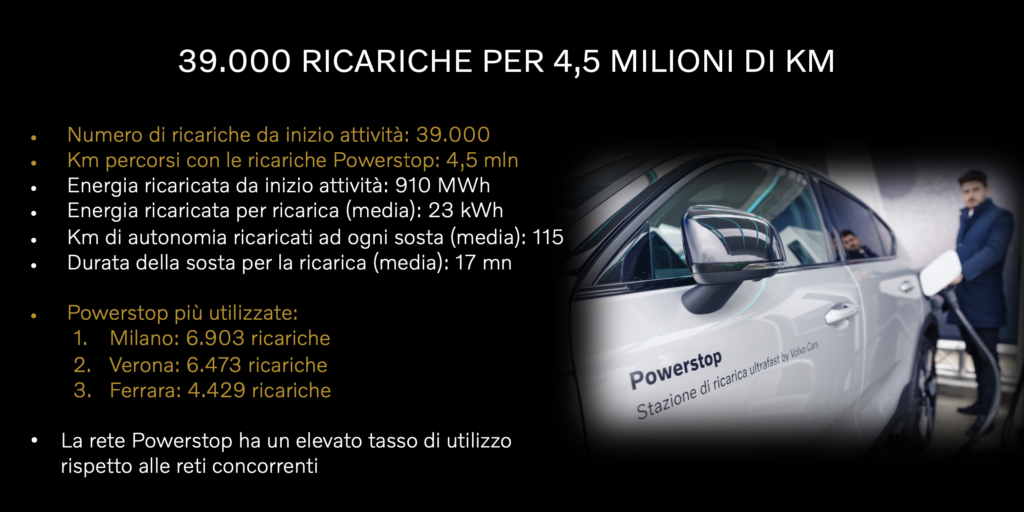 Il progetto Powerstop è stato promosso nel 2021 da Volvo Car ltalia in collaborazione con la rete delle concessionarie ufficiali Volvo in Italia per favorire su scala nazionale la diffusione della mobilità elettrica nel nostro Paese, in linea con la scelta strategica di Volvo Cars a favore dell’elettrificazione. L’iniziativa, pensata per fornire un rassicurante servizio a quegli automobilisti che intendono scegliere di guidare elettrico ma temono le carenze infrastrutturali del nostro Paese in tema di possibilità di ricarica sulle lunghe distanze, ha portato all’installazione di stazioni di ricarica ultrafast presso le concessionarie Volvo. La direzione intrapresa è quella dell’ammodernamento della mobilità in senso elettrico.