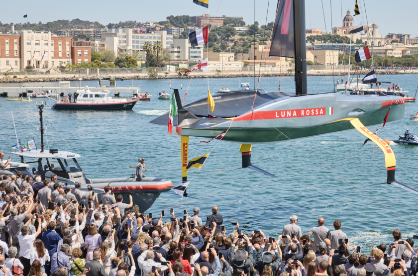 A distanza di 25 anni dal varo della prima Luna Rossa (nel 1999), è sceso oggi in acqua lo scafo di America’s Cup n.10 del challenger italiano: si tratta dell’AC75 foiling con il quale Luna Rossa Prada Pirelli parteciperà alla 37^ Coppa America di Barcellona (Spagna).