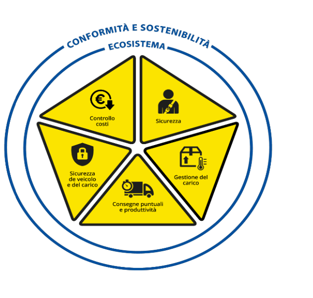 Maggiore sicurezza: far crescere la professionalità/specializzazione dei conducenti e effettuare una manutenzione attenta dei mezzi per ridurre gli incidenti; Gestire il carico, vuoto/pieno e le temperature; Effettuare consegne puntuali e aumentare la produttività; Migliorare la sicurezza dei veicoli e del Carico, attraverso la rintracciabilità e la riduzione rischio furto;
