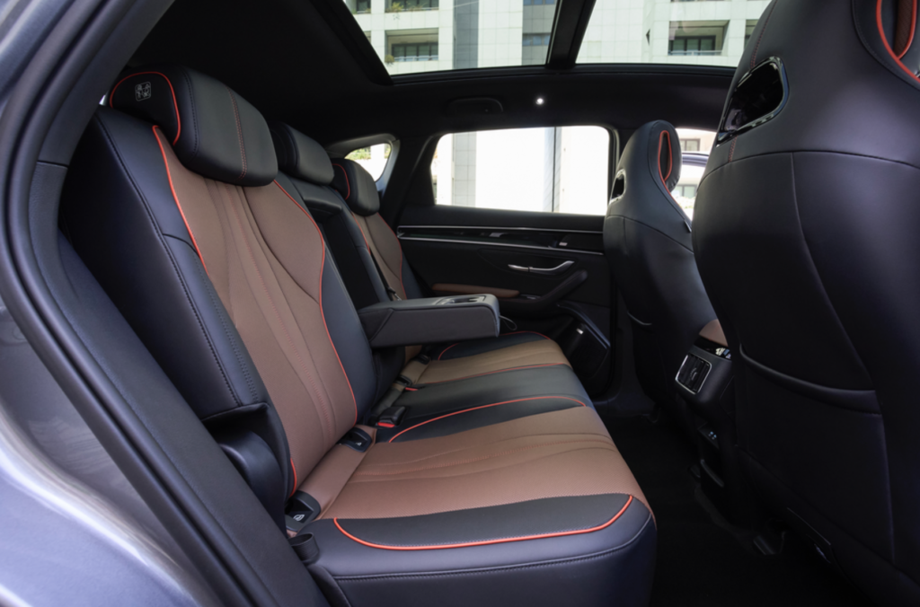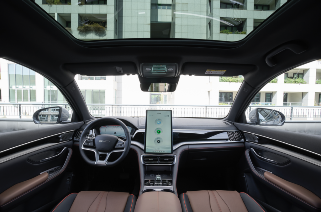 All’interno, il BYD SEAL U DM-i emana un’atmosfera premium con un sapiente mix di design moderno ed elegante, superfici morbide al tatto, finiture di alta qualità e illuminazione ambientale multicolore avvolgente. I sedili, alcune parti del cruscotto, i pannelli delle porte e la console centrale sono rivestiti in pelle vegana con doppie cuciture a contrasto.