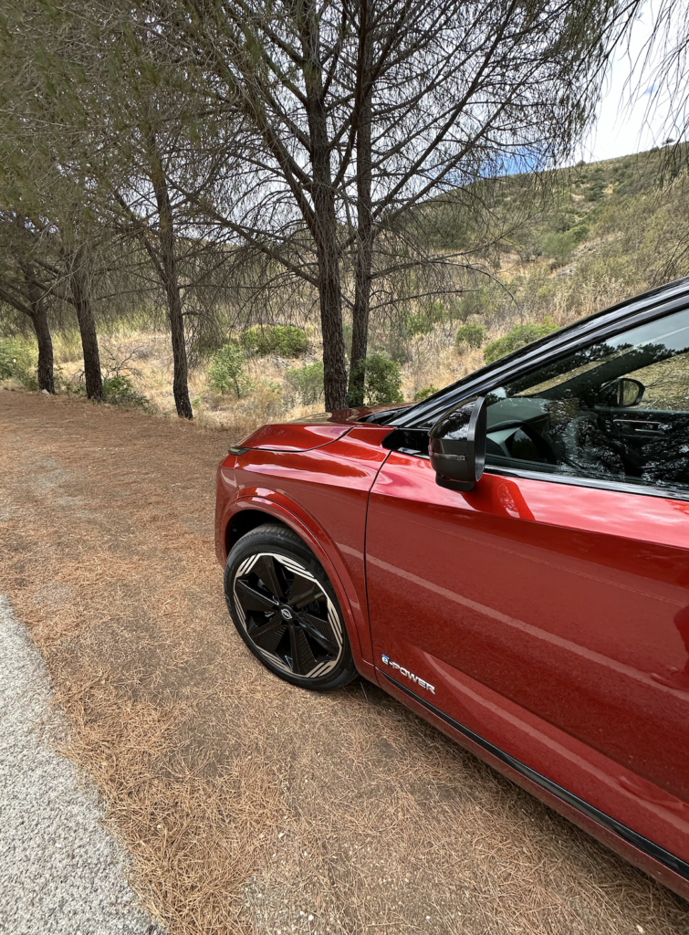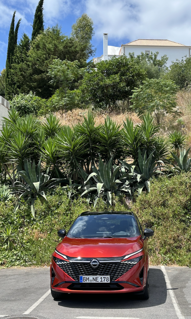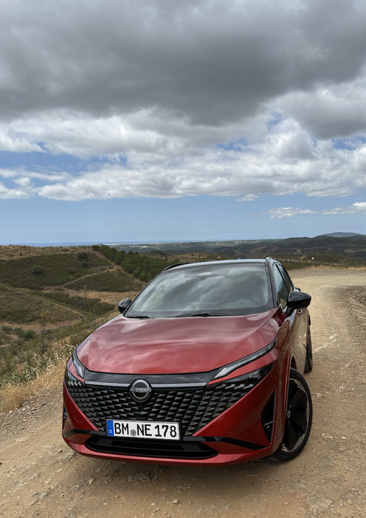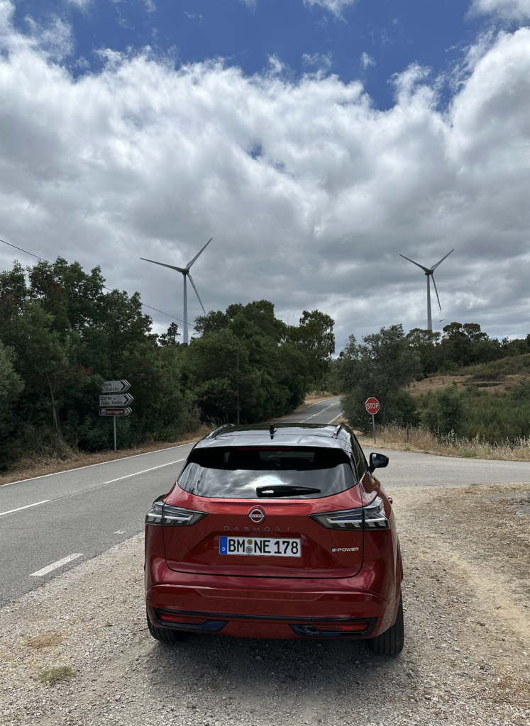 Guidandola qui in Algarve confermo a pinei voti che la  tenuta di strada è da suv, se si alza il ritmo, si perde un po’ di sensibilità sullo sterzo e si allargano leggermente le curve, però solo se si alza il ritmo oltre i limiti consentiti, invece a codice della strada è la tipica Giapponese di livello ottimo. La frenata è decisa, mai sollecitata più del necessario, il pedale risponde bene e subito, non si “arriva lunghi”. La qualità costruttiva e cura del dettaglio è ottima, come Nissanci ha sempre abituato. Esteticamente mi piace molto il nuovo frontale e in quanto alla guida è a mio parere un ottima compagna di viaggio. Ciò che non cambia, invece, sono i motori, che restano l’1.3 turbo-benzina mild-hybrid con 140 o 158 CV e la versione  e-Power, da me provata. e-power combina un motore elettrico che fornisce la potenza per muovere le ruote e un motore benzina  tre cilindri 1.5 turbo-benzina a compressione variabile che funziona esclusivamente da generatore per ricaricare la batteria da 1,85 kWh per una potenza totale di 190 CV e 330 Nm di coppia.