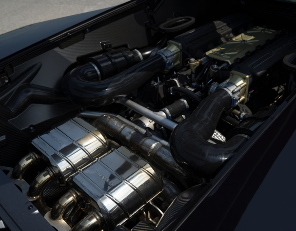 Nel cofano, l’Eccentrica V12 ha un motore V12 da 5,7 litri, figlio della prima generazione di Diablo risalente all’inizio degli anni ’90 e in grado di erogare 550 CV e 600 Nm di coppia. Il motore si accompagna ad un cambio personalizzato a 6 marce con rapporti riproporzionati e ad un nuovo servosterzo per performance ottimali, elemento assente nelle prime serie di Diablo (1991-1994). Camme nuove, corpo farfallato elettronico e volano ottimizzato aumentano ulteriormente le prestazioni dell’Eccentrica V12 che non solo raggiunge la cifra impressionante di 550 cavalli in modo più progressivo rispetto al motore originale, ma aumenta la velocità massima di ben 10 km/h rispetto alla già velocissima Diablo, raggiungendo una velocità di punta stimata di 335 km/h.