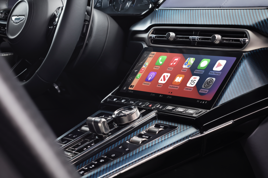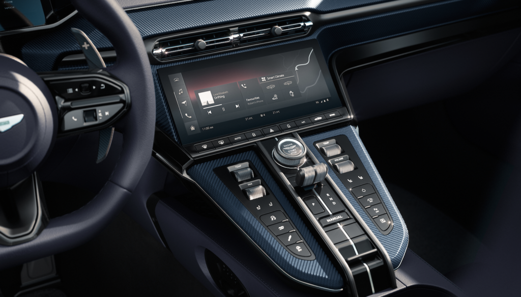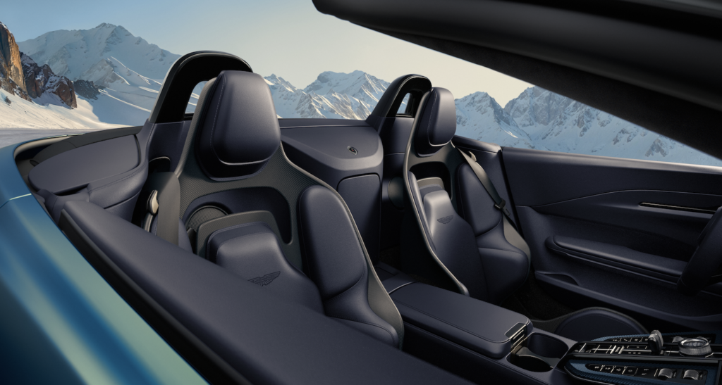 La Vantage Roadster, come la sua controparte Coupé, è l’ultimo modello dotato dell’infotainment di nuova generazione di Aston Martin. Creato internamente e introdotto per la prima volta sulla DB12, è interamente personalizzato e sviluppato in casa da zero. Il sistema che mette insieme un multischermo completamente integrato con una connettività online completa, con una tecnologia touchscreen Pure Black da 10,25″ con controllo capacitivo singolo e gestuale multi touch. I comandi del touchscreen rimangono in equilibrio con la tattilità degli interruttori fisici, con i pulsanti mantenuti per le operazioni meccaniche chiave di selezione delle marce, selezione della trasmissione, riscaldamento e ventilazione. Sono inoltre presenti interruttori di controllo per il telaio, l’ESP e gli scarichi, le impostazioni del sistema di sicurezza attiva e il Park Distance Control, per garantire che i comandi più comuni possano essere utilizzati in modo intuitivo e senza dover distogliere lo sguardo dalla strada. La nuova applicazione di connettività per i clienti Aston Martin, che supporta i dispositivi iOS e Android, consente l’interazione, il controllo e il feedback da e verso la Vantage del cliente tramite il suo dispositivo personale. Vantage Roaster è dotata di serie del sistema audio Aston Martin 390w a 11 altoparlanti. Sviluppato utilizzando un hardware avanzato, questo sistema è dotato di una modalità audio surround con elaborazione del suono surround QuantumLogic® per un ambiente sonoro coinvolgente. Tuttavia, se si ritiene che la colonna sonora sia davvero importante, alcuni clienti apprezzeranno il sistema sviluppato con il partner audio di Aston Martin, Bowers & Wilkins. Progettato acusticamente in base al volume e alla forma dell’abitacolo della Vantage Roadster, questo eccezionale sistema utilizza tecnologie e innovazioni presenti nei rinomati altoparlanti di livello mondiale di Bowers & Wilkins.