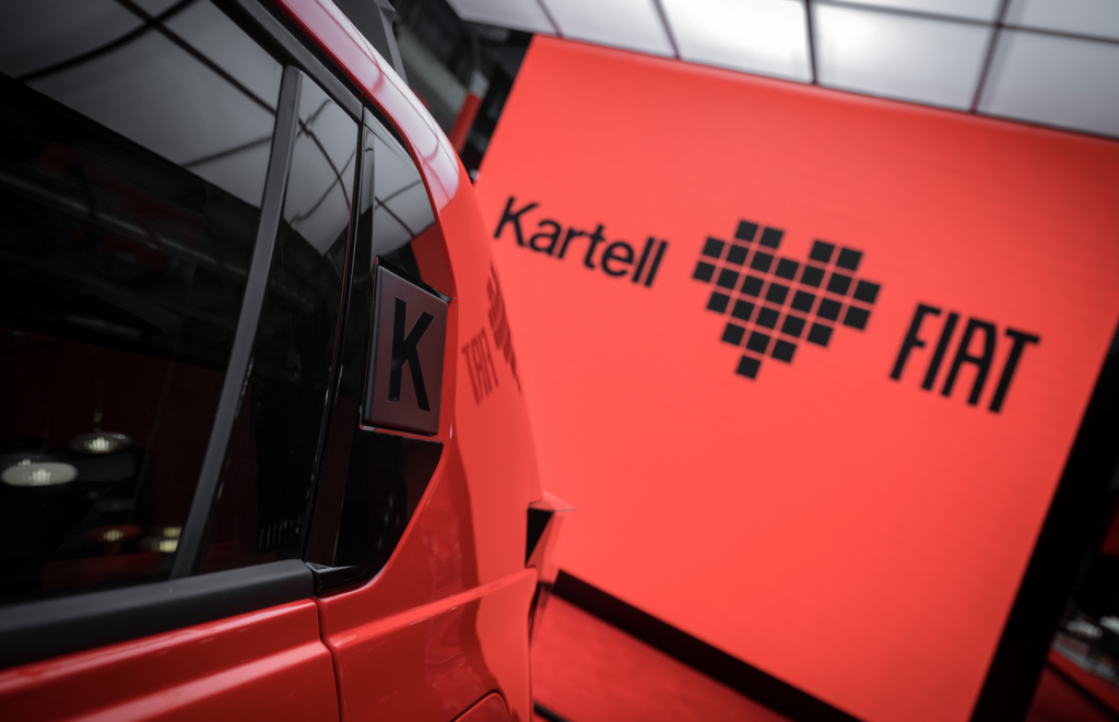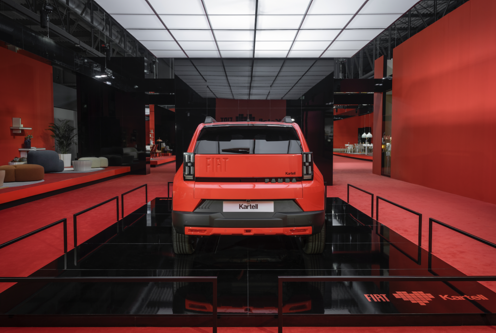 La collaborazione ha portato alla première mondiale della Grande Panda Kartell in un ambiente unico, curato da Ferruccio Laviani, che, in collaborazione con il Centro Stile FIAT, ha combinato le sfumature di rosso in modo maestrale dando vita a uno spazio espositivo immersivo che include prodotti di catalogo, prototipi di design e restyling di alcuni dei capolavori Kartell.
