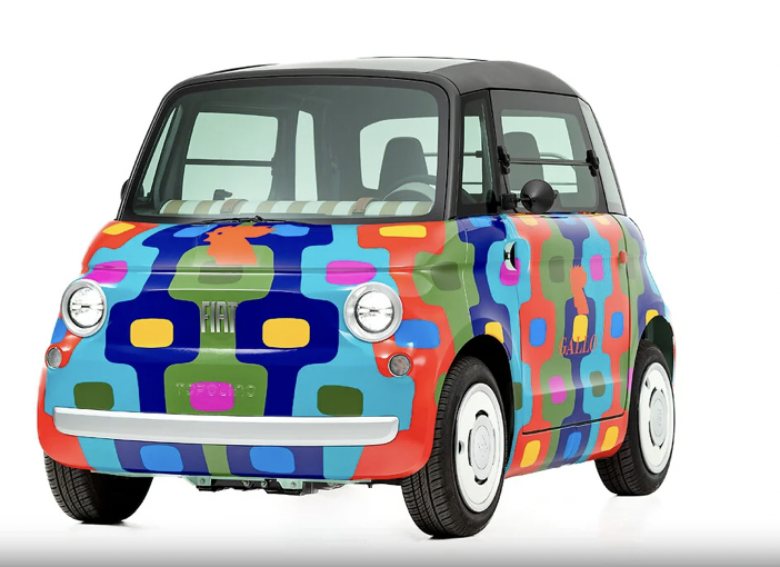 - Pois vivaci, un pattern divertente che conferisce movimento e personalità alla microcar elettrica.