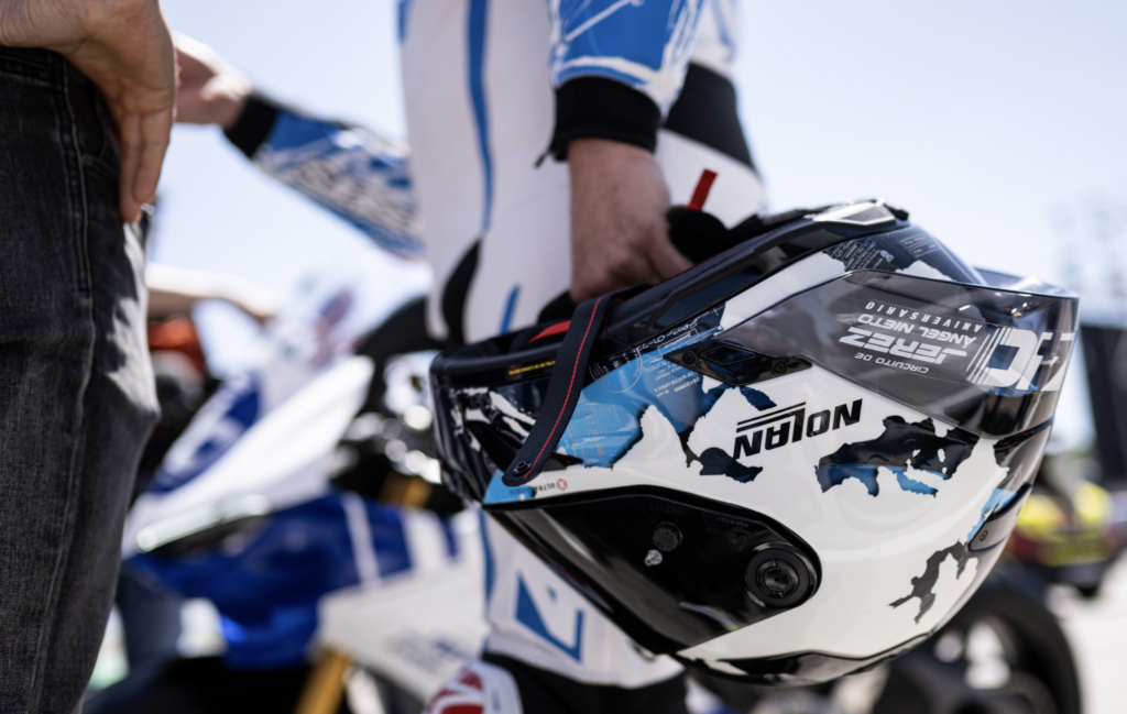 Una celebrazione che unisce storia, emozione e orgoglio. Protagonista assoluto del week-end di gara è il top di gamma della collezione speeding Nolan: una versione speciale di X-804 RS Ultra Carbon, realizzata in esemplare unico per questa ricorrenza, personalizzata con l’iconica grafica del mappamondo ispirata al casco con cui Carlos Checa vinse il Campionato Mondiale Superbike nel 2011, e il logo 40° anniversario Circuito di Jerez.