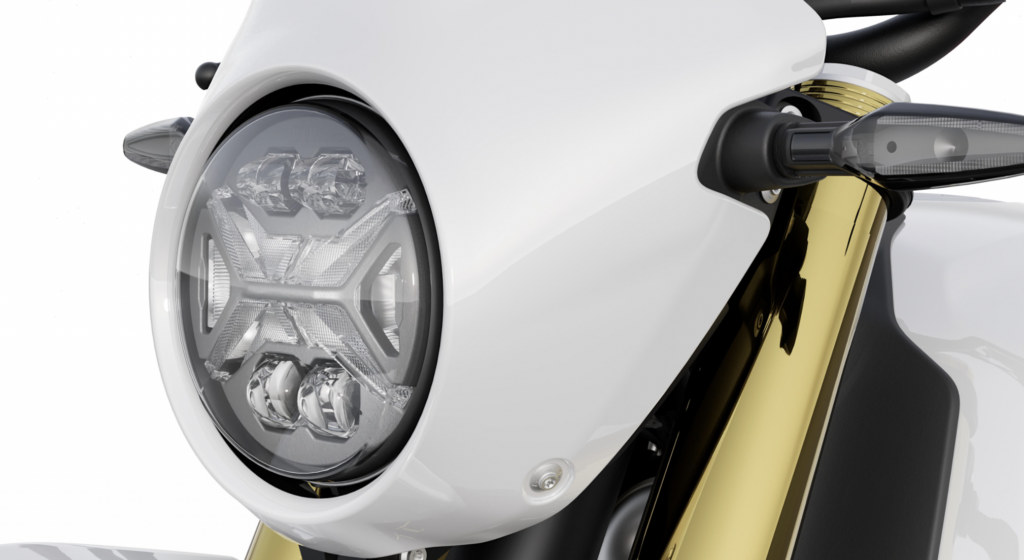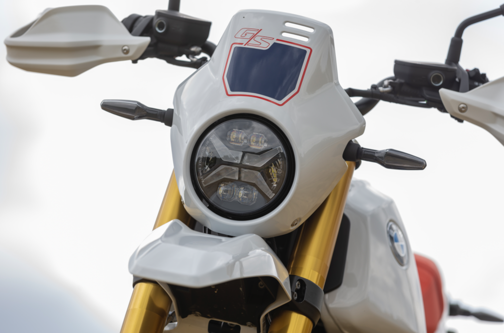 La nuova BMW R 12 G/S monta di serie un faro anteriore rotondo a LED compatto con diametro di 5 3⁄4″ e una firma luminosa iconica a forma di “X”. Anche gli indicatori di direzione e le spie di controllo utilizzano la tecnologia LED.