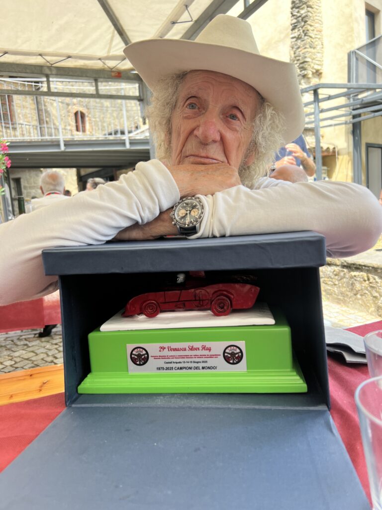 Arturo Merzario, vincitore di due Targa Florio, tre Mondiali Marche, preso il via in 57 Gran premi di F1 e corso come pilota ufficiale della Ferrari, socio e amico della Scuderia Sant Ambroeus, ha ricevuto il premio 1975-2005 Campioni del Mondo.