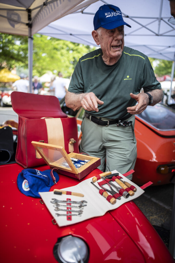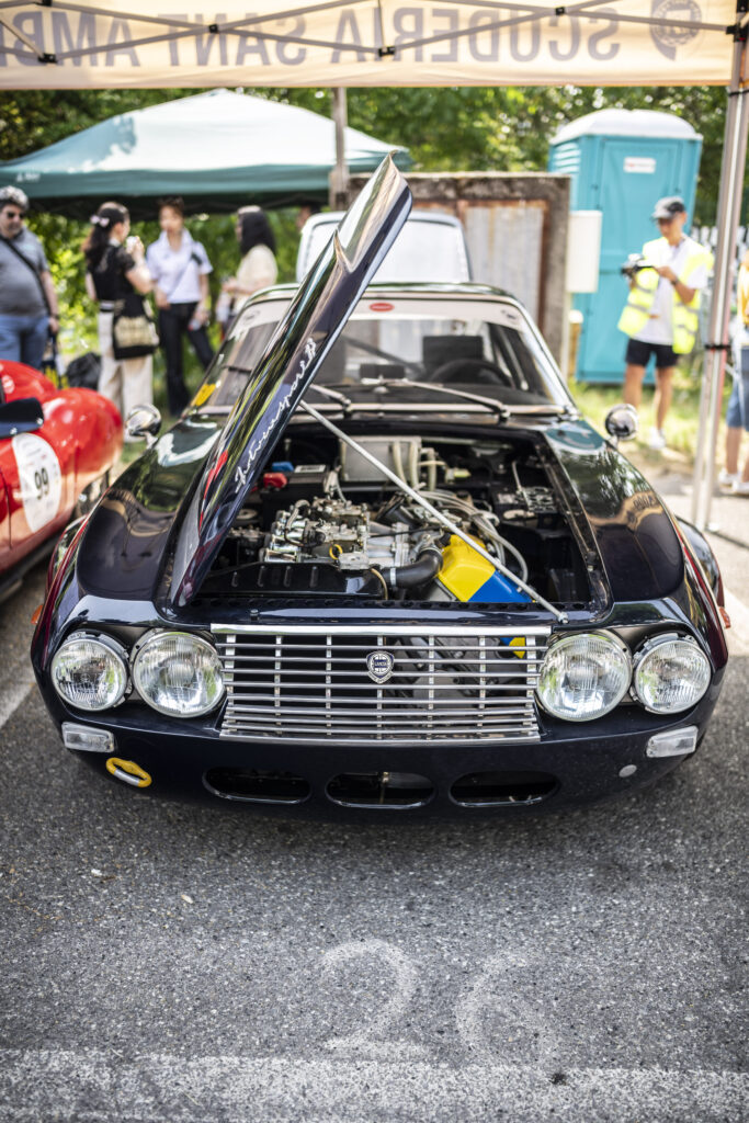 La Scuderia Sant Ambroeus, giunta alla sua quinta partecipazione consecutiva, ha schierato ben undici vetture di proprietà dei soci. Questi esemplari, pregni di valore storico e sportivo, sono per la maggior parte modelli da competizione. Tra le vetture in mostra, spiccava un’Alfa Romeo 6C 1750 GS Zagato del 1931, icona del design italiano e del motorismo sportivo. Alla fine degli anni ’20 del secolo scorso, infatti, la gamma Alfa Romeo 6C 1750 si arricchì della carrozzeria denominata Super Sport che, con l’arrivo della quarta e quinta serie propose anche delle versioni spider e cabriolet, le Gran Sport, caratterizzate dall’impiego del compressore volumetrico. Il celebre carrozziere milanese Zagato ha lasciato il segno su queste vetture dall’impronta sportiva, destinate a distinguersi per la loro bellezza e per i successi agonistici. Presenti anche un’Alfa Romeo 1750 GTV Gr.2, una classe 1970 appositamente preparata per le competizioni in Gruppo 2, e una one-off Alfa Romeo V6 3.0 “Vittoria” Castagna del 1995.