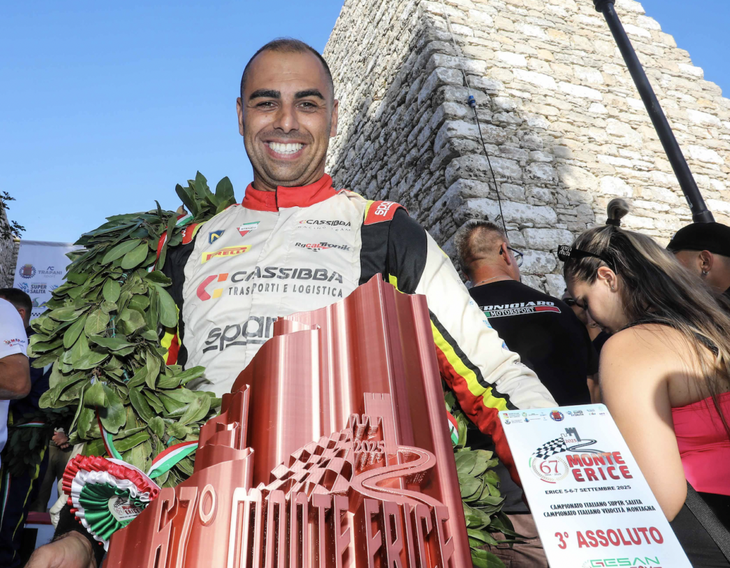 Un finale di stagione da protagonista per Samuele Cassibba, che alla 67^ Cronoscalata Monte Erice ha conquistato un prestigioso terzo posto assoluto nella tappa conclusiva del Campionato Italiano Supersalita. Il portacolori della Scuderia Ateneo ha confermato la propria competitività al volante della Nova Proto V8 3000, migliorando manche dopo manche e consolidando il risultato con due salite di gara molto consistenti. Risultato che conferma l’efficace progressione durante la proficua stagione, dopo aver raccolto punti preziosi anche nella difficile prova di Gubbio segnata dalla pioggia. Sui 5,730 km del tecnico e affascinante tracciato siciliano, il portacolori della Scuderia Ateneo ha mostrato grande solidità fin dalle prove ufficiali, concluse con il 2° posto nella prima manche in 3’05.04 e il 3° nella seconda con 3’03.03. Nelle due salite decisive di gara, Cassibba ha mantenuto un passo competitivo con la Nova Proto V8 3000, firmando in Gara 1 il suo miglior crono di 2’59.87 che gli è valso il 3° posto e chiudendo Gara 2 al 4° con 3’01.49. Prestazioni che, grazie al lavoro di squadra, hanno consolidato il suo piazzamento complessivo sul podio e gli hanno permesso di chiudere il Supersalita 2025 tra i protagonisti assoluti.