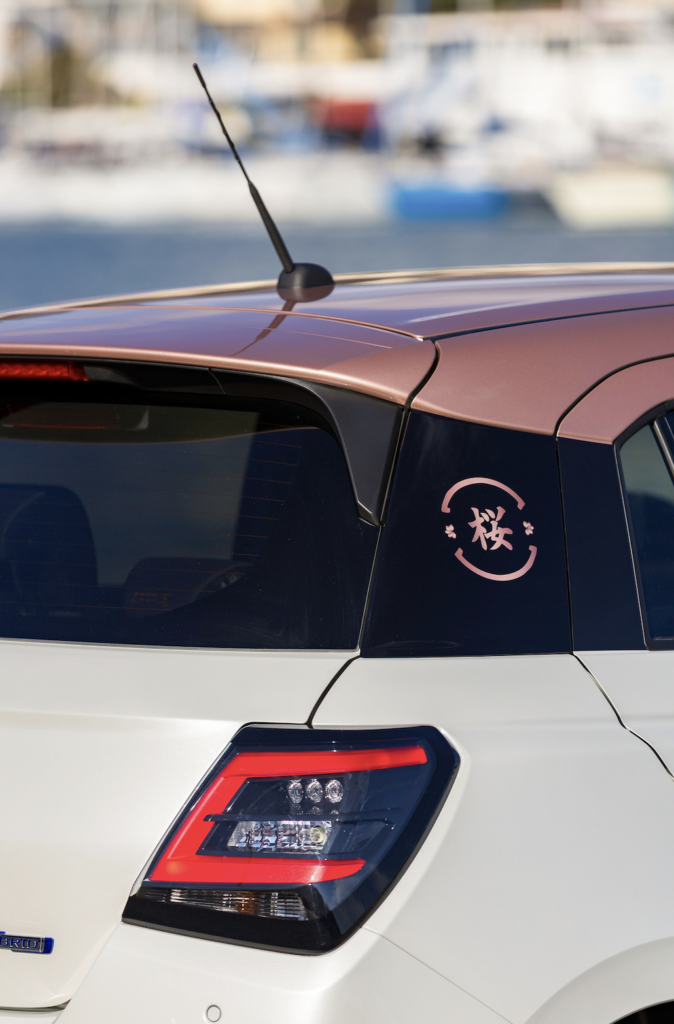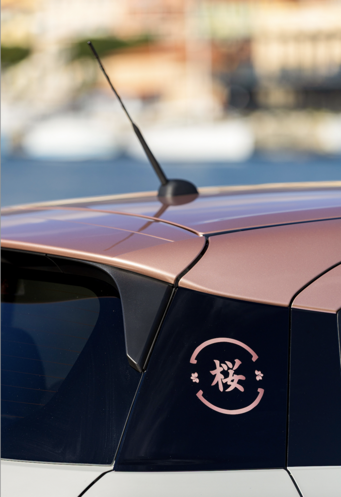 A sottolineare l’ispirazione orientale, troviamo le decal Kanji 桜 (Sakura) sui montanti posteriori: un dettaglio distintivo che rafforza il legame con la tradizione giapponese.