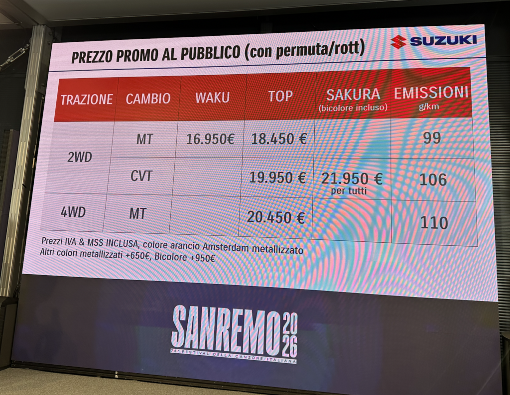Suzuki Swift Hybrid Sakura debutta al Festival di Sanremo!